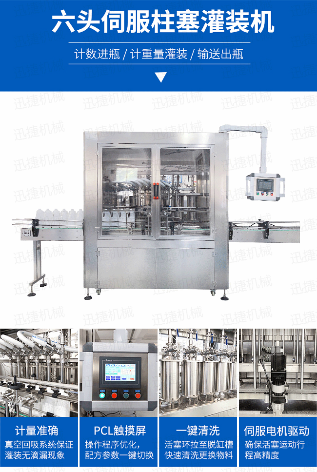 全自動(dòng)16頭伺服柱塞灌裝機(jī)是我公司精心設(shè)計(jì)的新款灌裝機(jī),本伺服柱塞灌裝機(jī),采用PLC和觸摸屏自動(dòng)化控制,具有計(jì)量準(zhǔn)確、結(jié)構(gòu)運(yùn)行平穩(wěn)、噪音低、調(diào)節(jié)范圍大、灌裝速度快等優(yōu)點(diǎn)。而且對易揮發(fā)、易結(jié)晶、易起泡的液體;對橡膠、塑料有極強(qiáng)的腐蝕的液體,以及高粘度的液體、半流體都能適應(yīng)。在人機(jī)界面數(shù)字化調(diào)節(jié)計(jì)量,并且可設(shè)定100ml或200ml等所需計(jì)量,觸摸屏一觸即達(dá),而且可以單頭微調(diào)計(jì)量。