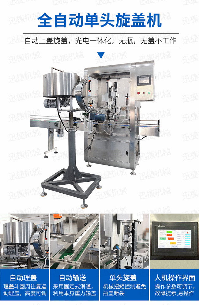 自動(dòng)旋蓋線是我司在吸收技術(shù)的基礎(chǔ)上研發(fā)的一款新型自動(dòng)生產(chǎn)線,特別適用于中小劑量液體灌裝和各種圓形瓶蓋,泵頭蓋,噴頭蓋,鴨嘴蓋,噴槍的鎖蓋。同時(shí)適用各種材質(zhì)圓形、異形瓶,各種規(guī)格的瓶子灌裝旋蓋。微電腦自吸蠕動(dòng)泵自動(dòng)定量、氣動(dòng)感應(yīng)定位灌裝(根據(jù)需要也可不選配升降灌裝結(jié)構(gòu))等。具有灌裝平穩(wěn)、操作簡單、高速分裝、旋蓋等優(yōu)點(diǎn)。廣泛應(yīng)用于醫(yī)藥、日化、飲料,酒水等行業(yè)。