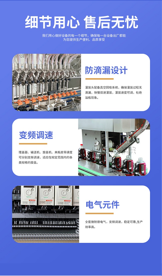 本機適用于多種材質,多種幾何形狀的容器,如塑料片、玻璃瓶、金屬瓶等;在需要更換瓶或蓋的時候,只要調整部分零件的位置即可,無需更換任何配件;在旋蓋過程中可以做到無瓶不下蓋。理蓋器、輸送機、旋蓋機、夾瓶皮帶速度可分別變頻調速,適應在規(guī)定范圍內的各類規(guī)格的旋蓋。(附:特殊規(guī)格定制即可)