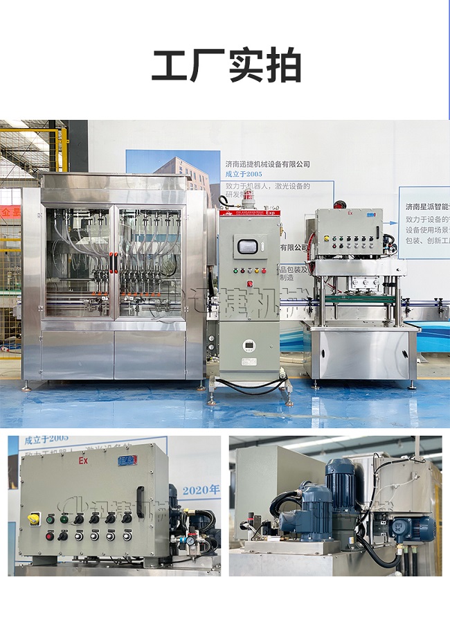 防爆液體酒精灌裝機是目前國內液體灌裝的高端產品,自動化程度高,灌裝計量精確,適用于塑料瓶、玻璃瓶等各種幾何形狀的瓶型的不含氣體的酒水、飲料、調味品及其他溶液的定量灌裝。機器采用觸摸屏代替?zhèn)鹘y(tǒng)的按鈕操作,操作簡單、方便、直觀??萍己扛?。機器灌裝計量可通過觸摸屏對灌裝時間的調整實現(xiàn)不同計量灌裝,方便操作者使用。