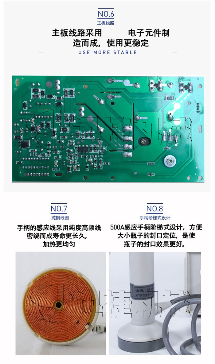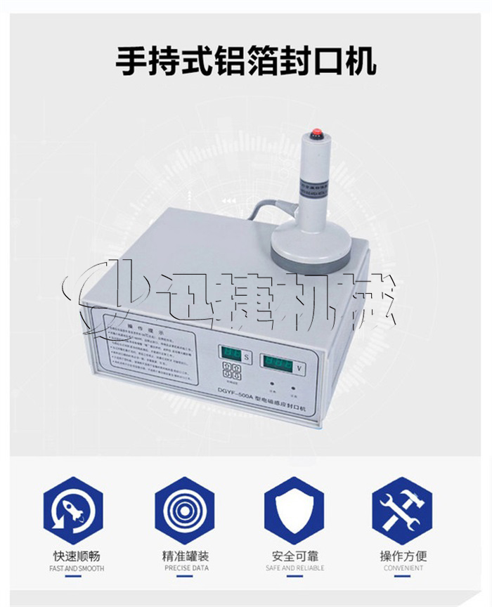 該該封口機為手持式鋁箔封口機,是一種便攜式電磁感應(yīng)加熱封口設(shè)備,專為制藥、化工、農(nóng)藥、食品、化妝品、輕工行業(yè)對容器進行鋁箔嚴(yán)密封口,封口材質(zhì)使用廣泛。