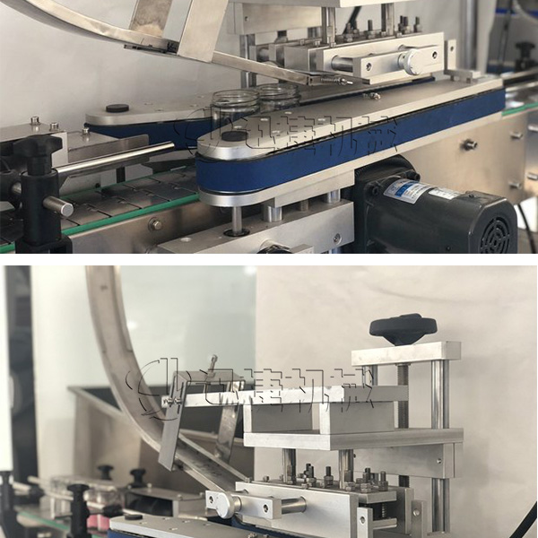 玻璃瓶封口機(jī)設(shè)備采用氣囊式全密封真空式結(jié)構(gòu),旋合式旋蓋原理,真空度可按需設(shè)定。瓶蓋預(yù)旋緊機(jī)構(gòu):理蓋落蓋到瓶口后,對馬口鐵蓋進(jìn)行預(yù)旋,保證蓋子旋鈕點(diǎn)準(zhǔn)確進(jìn)入到瓶口旋絲內(nèi),100%保證抽真空及旋蓋效果。解決了客戶擔(dān)心真空度的問題。