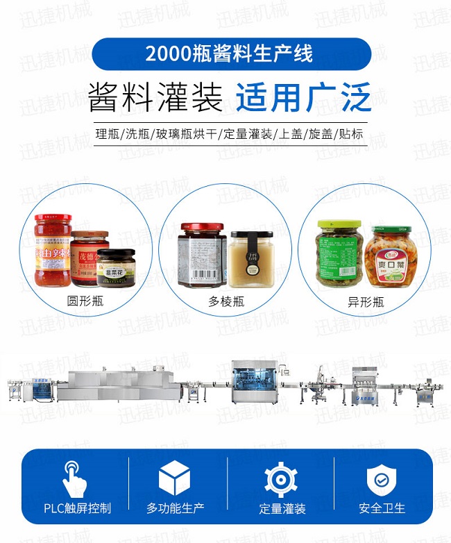 牛肉顆粒醬各種各樣的包裝方式在我們的生活中并不少見,隨著牛肉顆粒醬灌裝豐富化時代的到來,那么針對這么多包裝需求只要選擇這款全自動牛肉顆粒醬灌裝機(jī)設(shè)備就可以輕松的去實現(xiàn)多樣化的包裝方法,具備無滴漏灌裝;管道采用快裝式鏈接,完全符合衛(wèi)生要求,拆洗維護(hù)方便;全自動牛肉顆粒醬灌裝機(jī)設(shè)備還保障了瓶口干凈衛(wèi)生,輸送帶干凈衛(wèi)生,符合GMP標(biāo)準(zhǔn)有著操作調(diào)節(jié)便利,無瓶不灌裝,自動檢測,計數(shù)等一些類比較出色的優(yōu)勢特點,迅捷機(jī)械可根據(jù)客戶需求配理瓶機(jī)、旋蓋機(jī),貼標(biāo)機(jī),打碼機(jī)等設(shè)備來實現(xiàn)自身企業(yè)的實際生產(chǎn)需求。