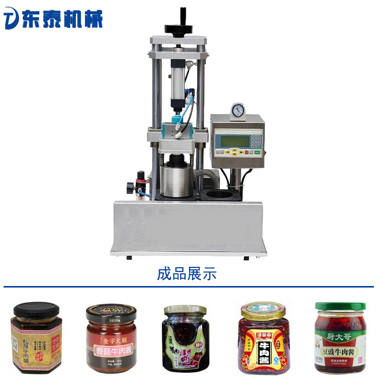 小型真空旋蓋機(jī),也可以稱之為半自動真空封口機(jī),辣椒醬、罐頭真空旋蓋機(jī)。